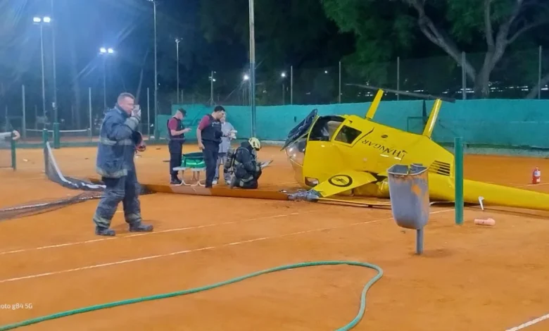 Una vez en el suelo, se verificó la rotura del rotor con daños en la hélice, provocando su desestabilización y vuelco de forma lateral en una de las canchas del tenis del complejo.