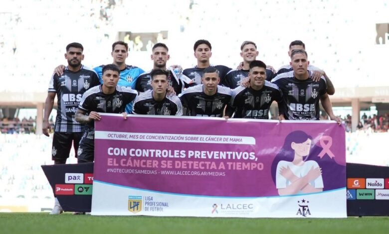 Central Córdoba salió a la cancha promocionando la campaña para la prevención del cáncer de mama