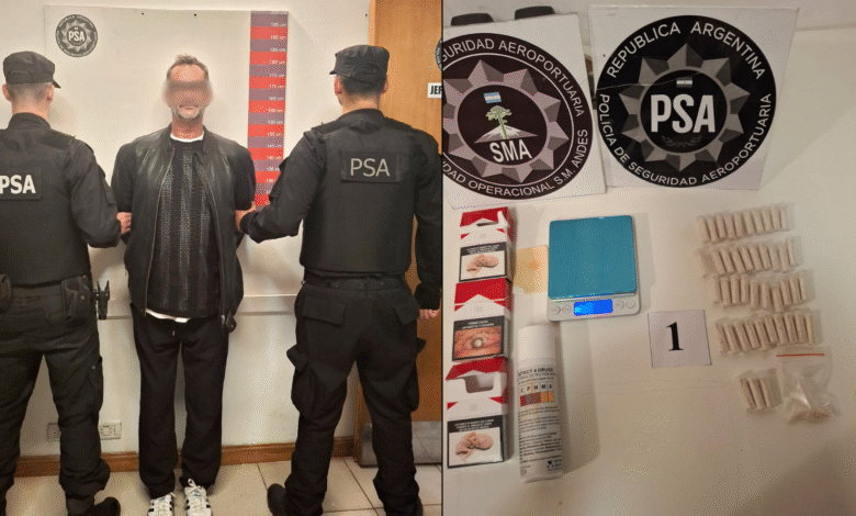 La Policía de Seguridad Aeroportuaria (PSA), dependiente del Ministerio de Seguridad Nacional, detuvo en el Aeropuerto “Aviador Carlos Campos” de la ciudad de San Martín de los Andes, provincia de Neuquén, a una persona que intentó transportar drogas sintéticas y cocaína a la ciudad de Buenos Aires.