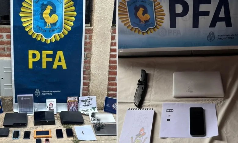 En este contexto, el juzgado Federal de Mar del Plata N°3 ordenó los allanamientos mediante los que se incautaron cuchillos de caza, municiones de arma de fuego, tres notebooks, una tablet, siete teléfonos celulares, material con simbología nazi y documentación de interés para la causa.
