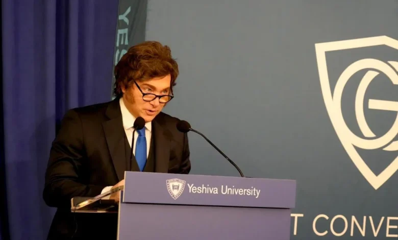 “Nos han metido dos bombas, una en la AMIA y otra en la Embajada de Israel. Por lo tanto, digamos, son nuestros enemigos. Además tengo una alianza estratégica con Estados Unidos e Israel”, expresó Milei, en la frase más relevante de su exposición que contó la presentación del rabino Ari Berman, rector de la Universidad.