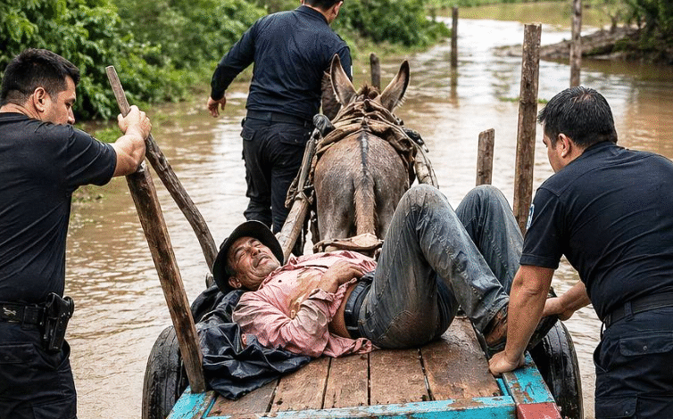 Efectivos de la Comisaría Nº 22 de Monte Quemado realizaron un operativo de rescate a un hombre en estado crítico en un camino de la zona rural, tras quedar varado en plena tormenta.