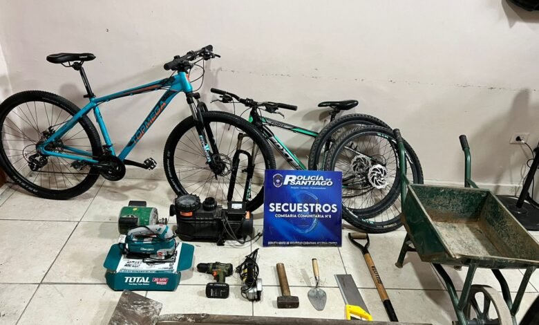 Entre los bienes secuestrados se encuentran herramientas, elementos de construcción, bicicletas y otros objetos, entre ellos una amoladora, un atornillador eléctrico, una sierra caladora, un serrucho, un martillo, palas, una carretilla, un motor de máquina hormigonera, una bomba de pileta y dos bicicletas.