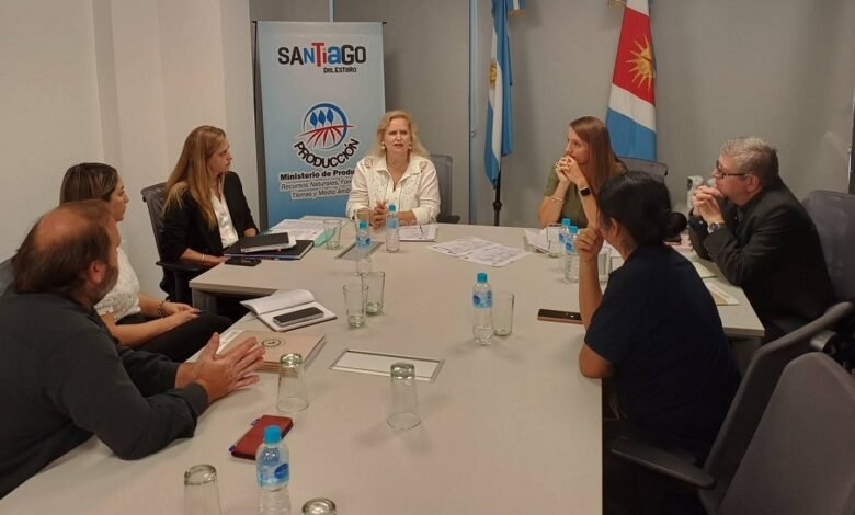 La decana de la Facultad de Ciencias Forestales de la Universidad Nacional de Santiago del Estero, Dra. Nancy Giannuzzo, junto al vicedecano Dr. Miguel Sarmiento y la secretaria de Extensión, Vinculación y Transferencia, Ing. Rocío Carreras, mantuvo una reunión de trabajo con el ministro de Producción, Ing. Néstor Machado, la directora de Bosques, Dra. Noelia Zanichelli, y la directora de Tierras Dra. Carolina Meneghini.