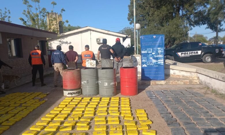 La Policía de Santiago del Estero asestó este lunes otro duro golpe al narcotráfico, con el secuestro de un cargamento con un total de 535 panes de cocaína que eran transportados ocultos en tachos de 200 litros.