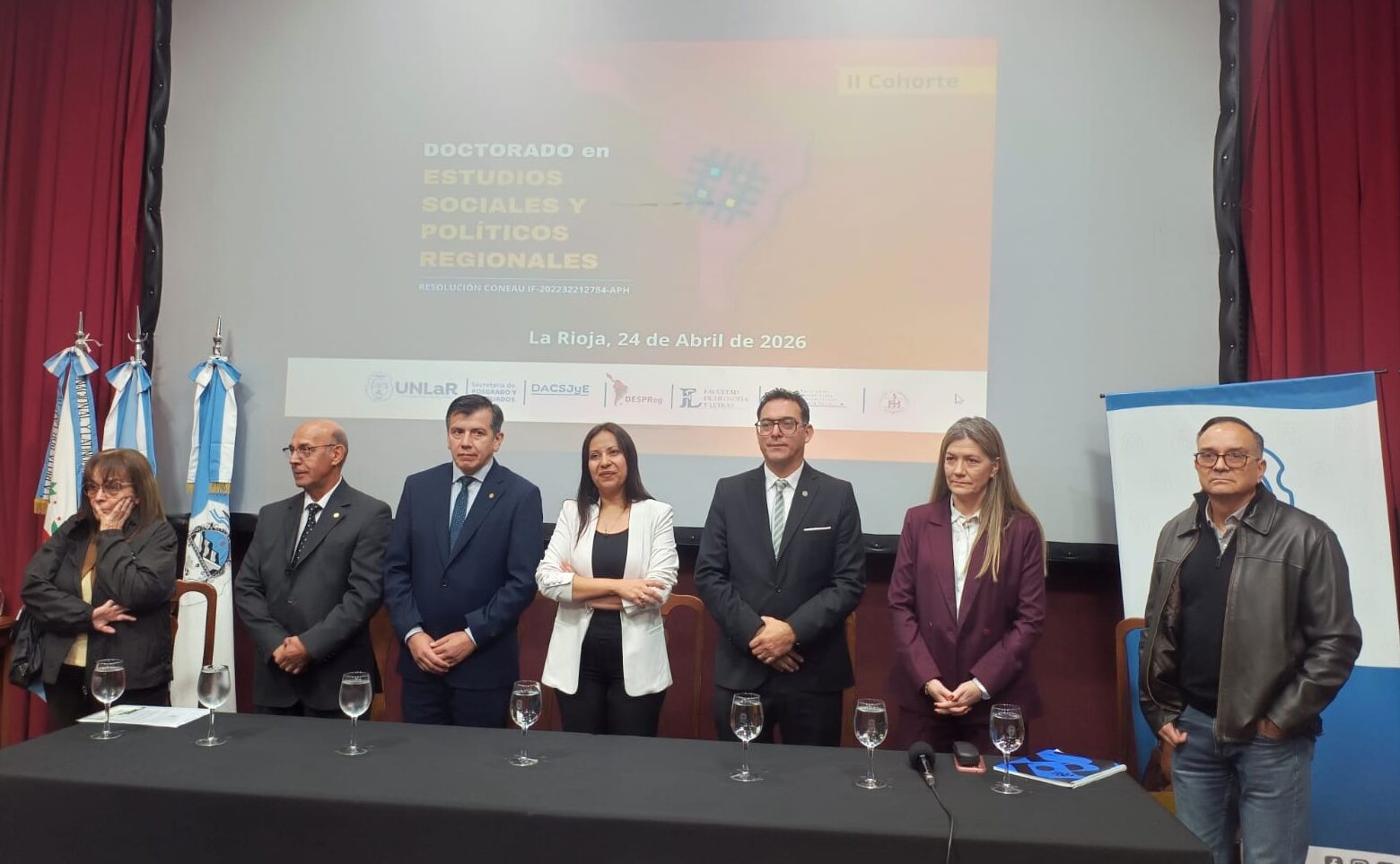 El acto tuvo lugar en la Universidad Nacional de La Rioja y contó con la participación de autoridades de las casas de estudio que integran la red: la rectora Natalia Álvarez Gómez; el rector de la UNSE, Marcelino Ledesma; el vicerrector de la Universidad Nacional de Catamarca, Carlos Savio; la decana del Departamento de Ciencias Sociales, Jurídicas y Económicas, María Inés Peralta de la Fuente; el Dr. Raúl Paz y la Dra. Beatriz Garrido, codirectora del doctorado por la Universidad Nacional de Tucumán.